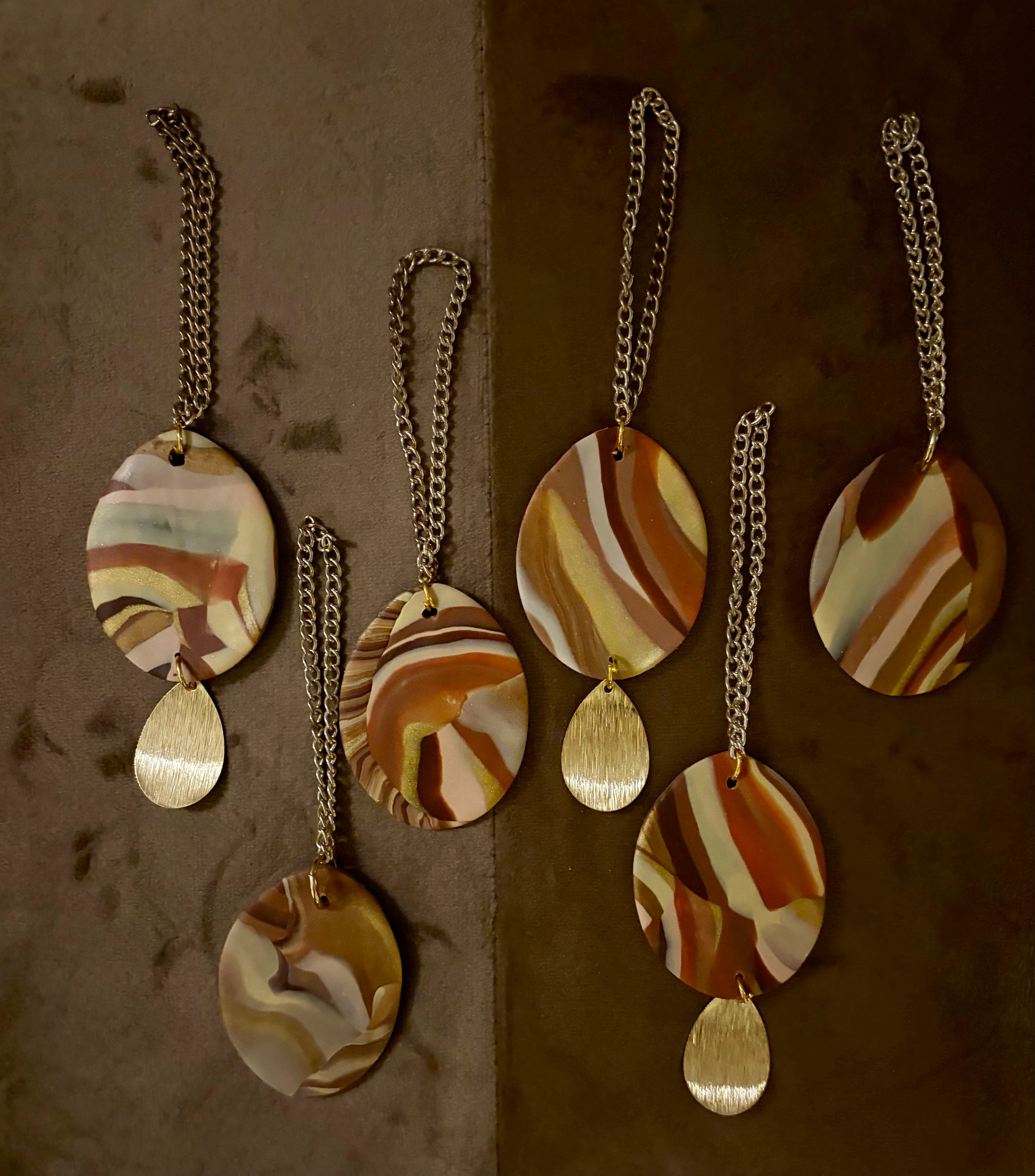 Unik påskepynt! Håndlaget av polymerleire. Leiren er lett og av god kvalitet. I varme toner: gull, beige, brun, sølv og hvit. Disse er lekre! Settet består av 6 pynt.