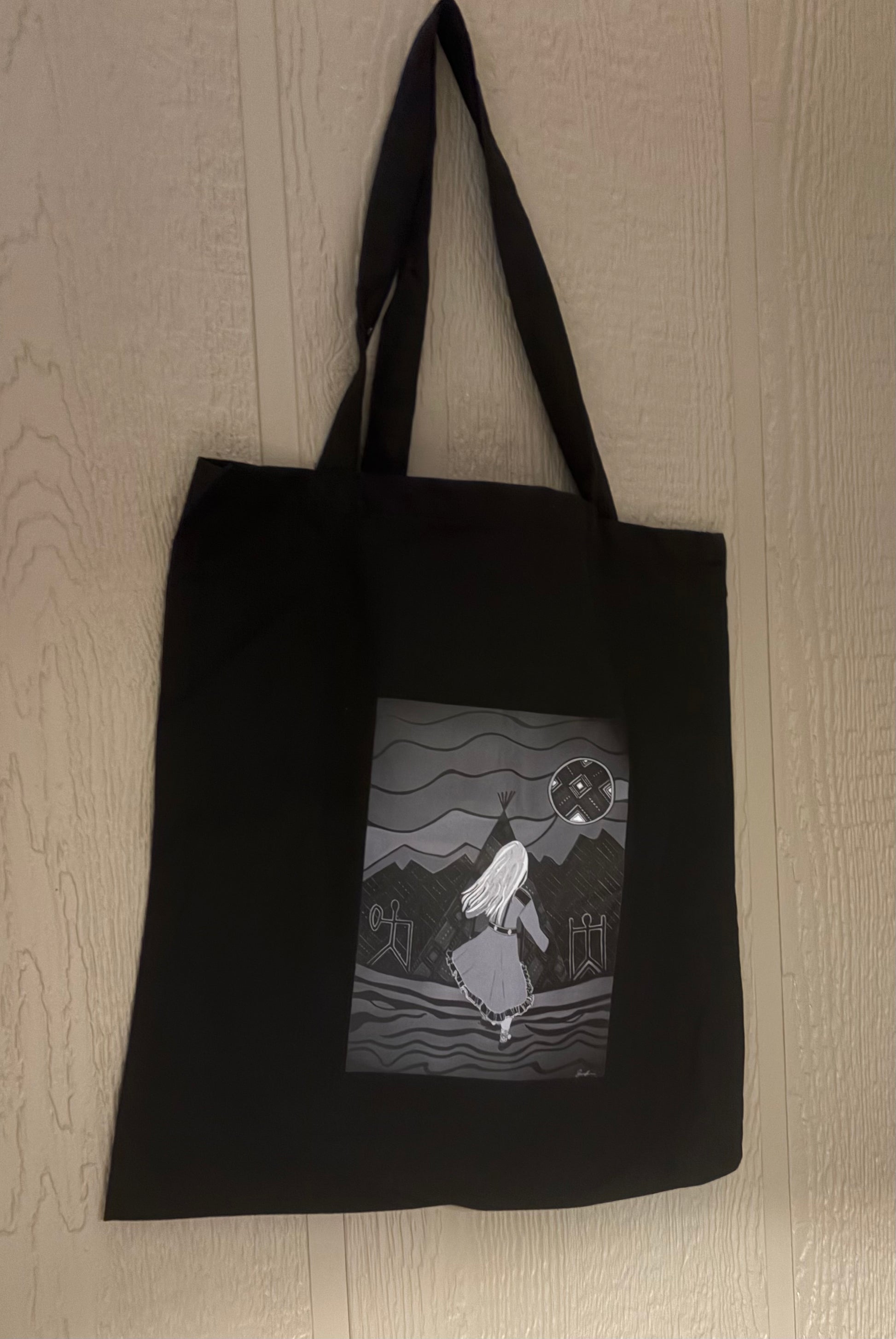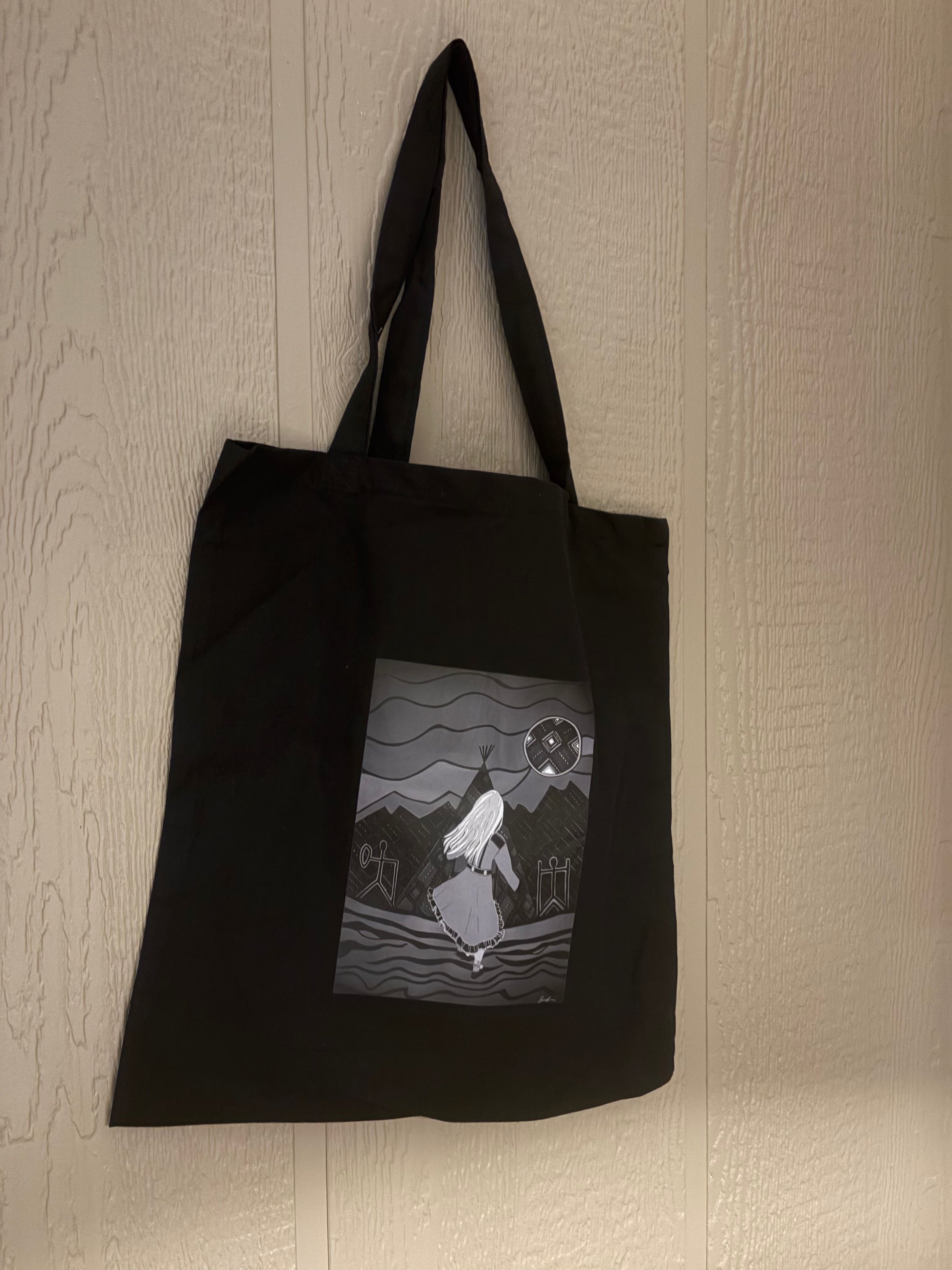 - Handlenett Áibbašeapmi som betyr lengsel på samisk. Bildet er tegnet av Sunniva Bogetun Johansen. Selve nettet er 39*36 cm + «håndtakene»