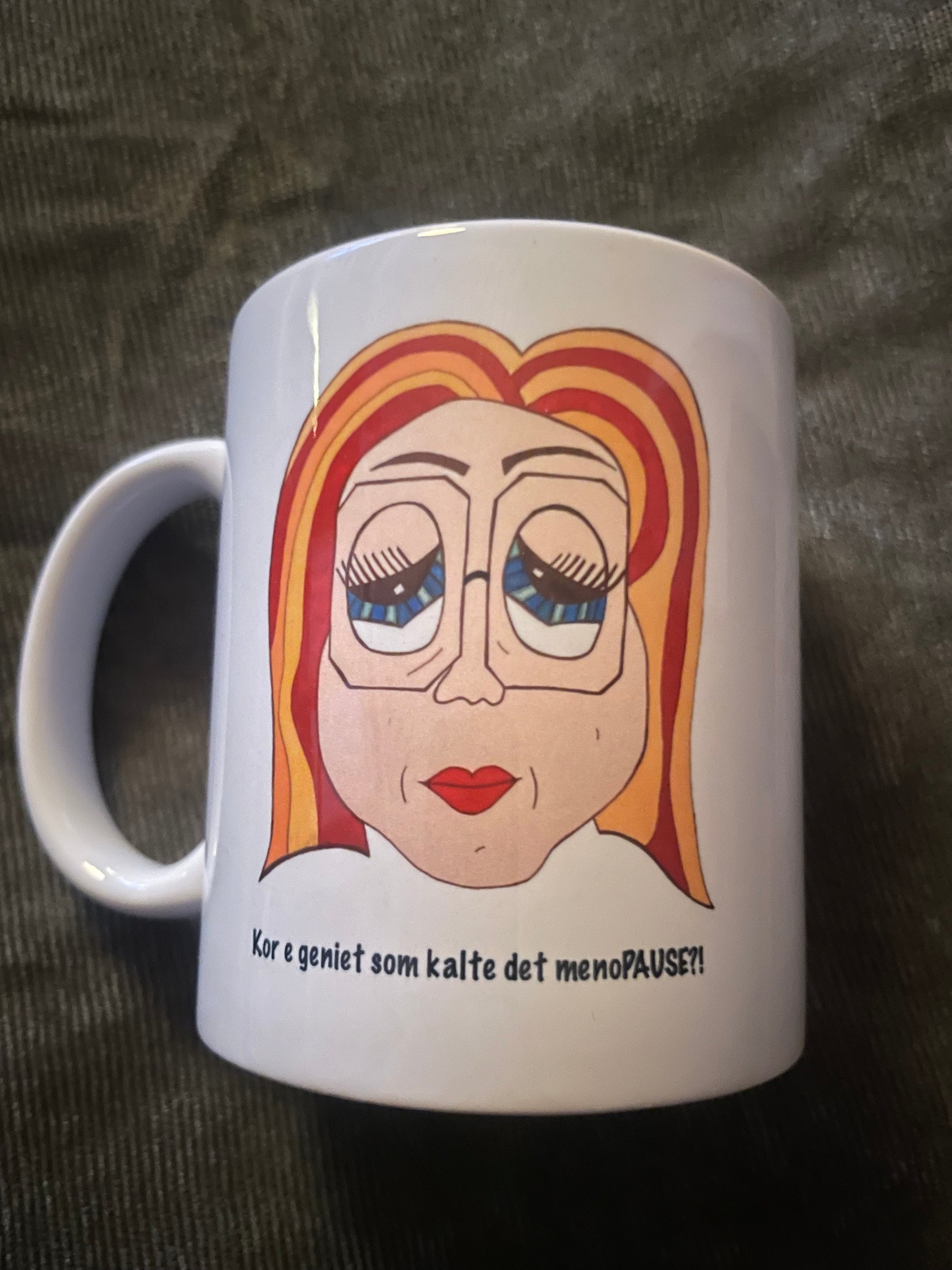 Velkommen til menopause – den evige hormonfestivalen du aldri kjøpte billett til. Koppene tåler vask i oppvaskmaskin.
