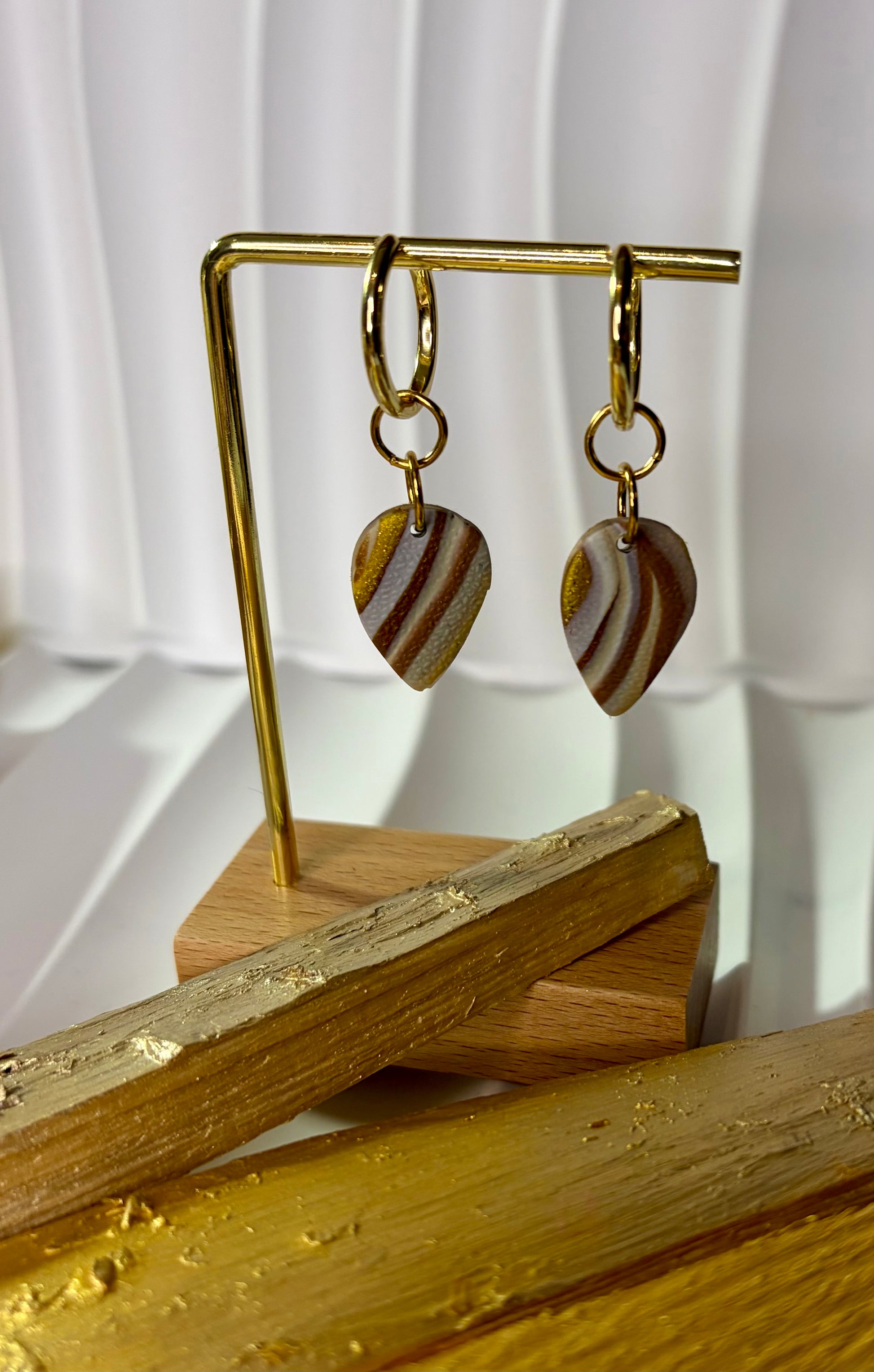 Håndlagede øredobber i polymerleire. Leiren er svært lett og av god kvalitet. Øreringene er gullbelagte. Unike da ingen par er like! Digger du brunt sånn som meg? Da vil disse passe deg!